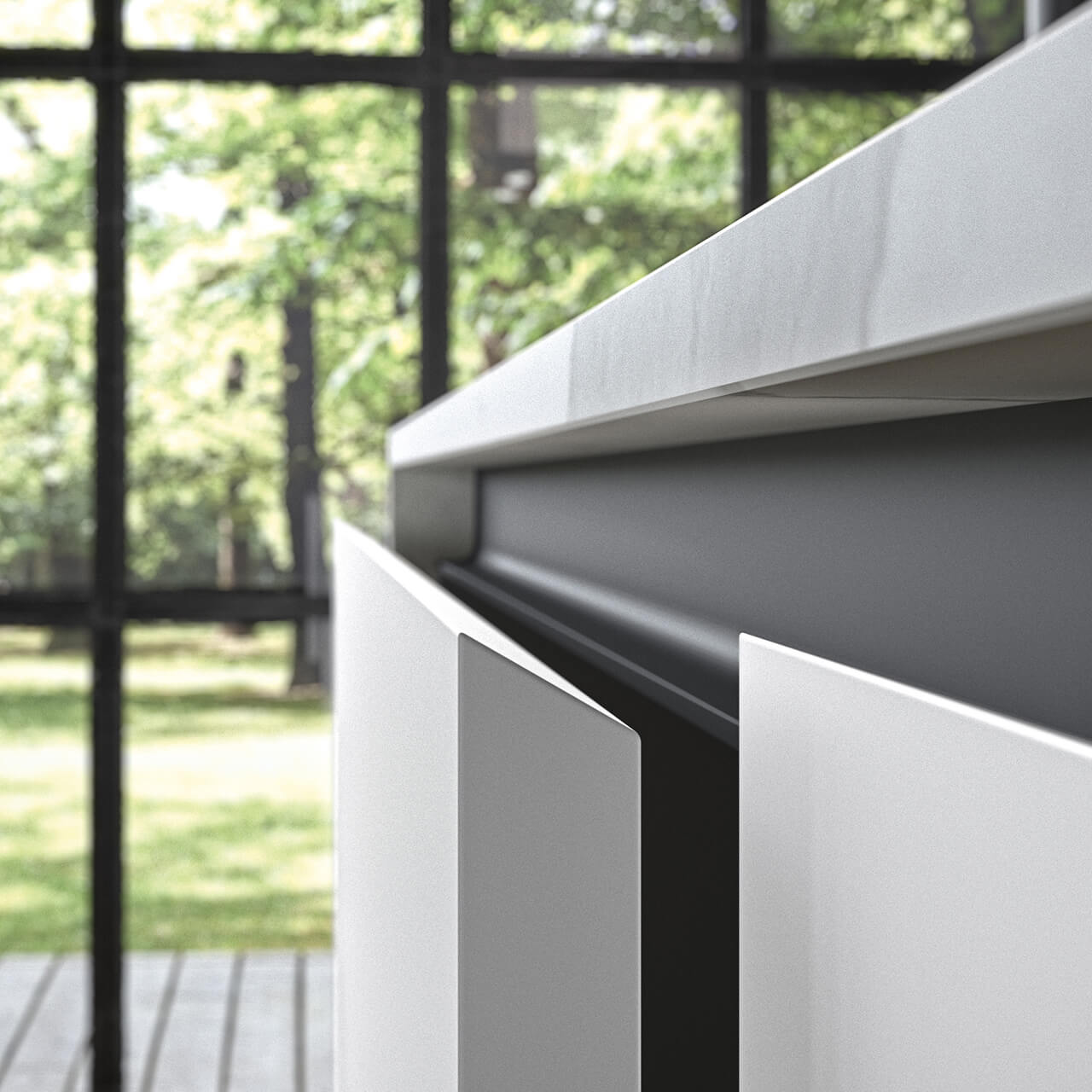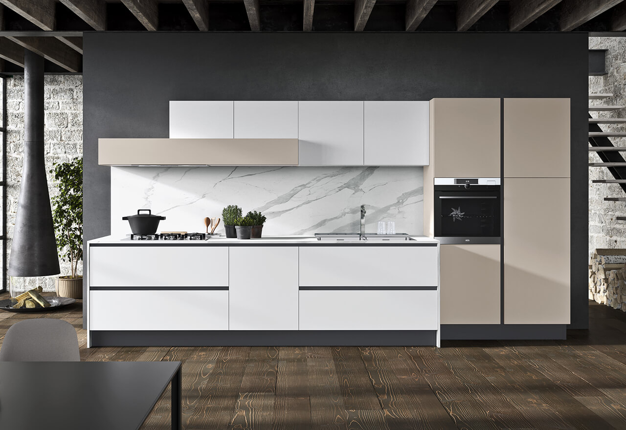 Le cucine laccate UV rappresentano un’evoluzione nel mondo dell’arredamento, offrendo una finitura di alta qualità che unisce estetica e resistenza. Questo tipo di laccatura si distingue per un processo di produzione innovativo, che utilizza la luce ultravioletta per un’essiccazione e indurimento rapidi della vernice. Disponibile con finitura lucida a effetto specchio e opaca con un gradevole effetto “soft-touch”.