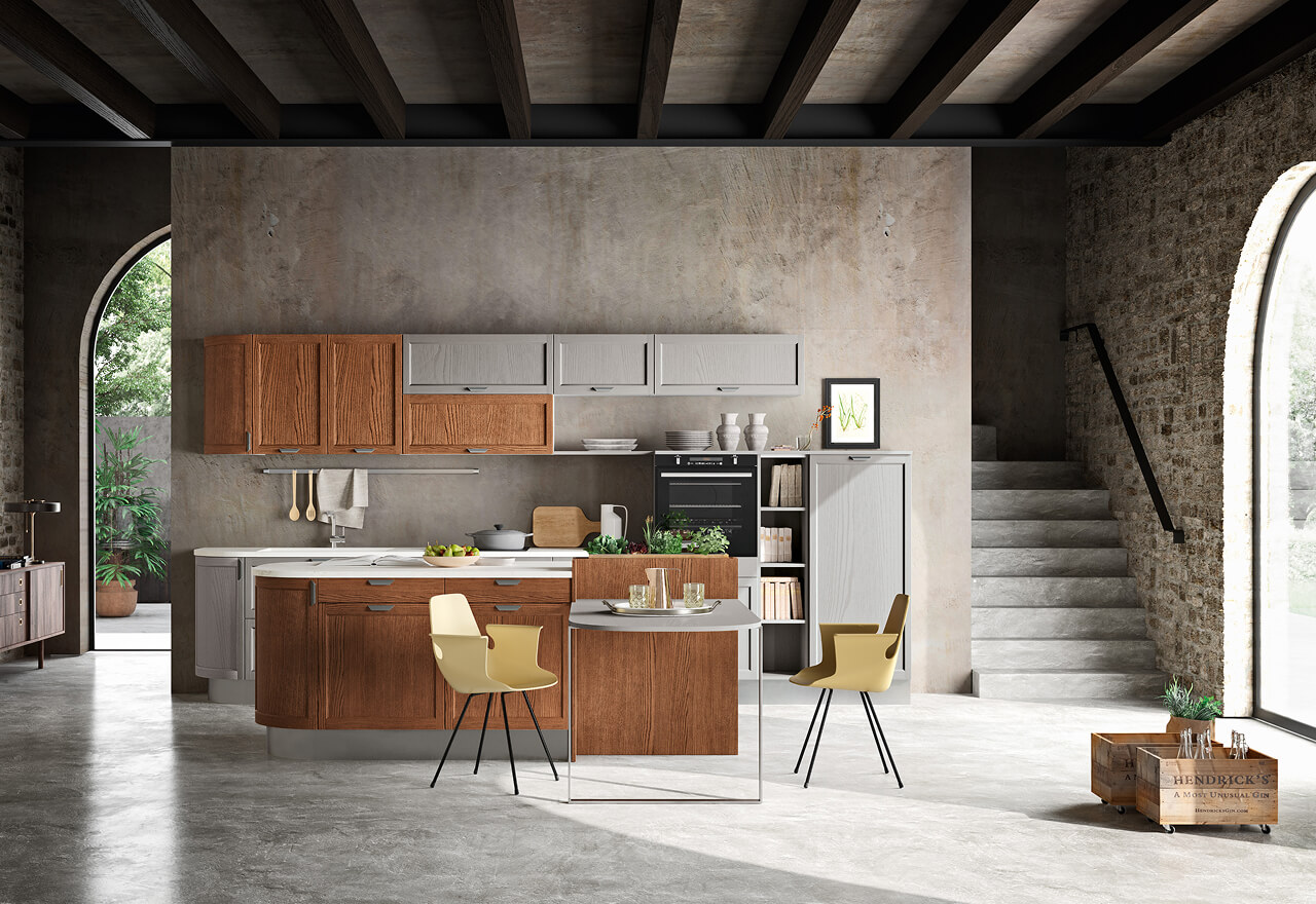 Le cucine con ante in legno evocano un senso di calore e accoglienza, richiamano alla mente le cucine delle nonne, ma reinterpretate con linee pulite e moderne.