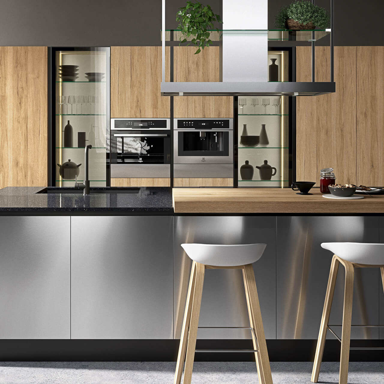 Se le finiture materiche puntano a un’estetica calda e naturale, le ante in acciaio inox lo stile professionale e industriale, scelto da chef e designer per le sue straordinarie proprietà.